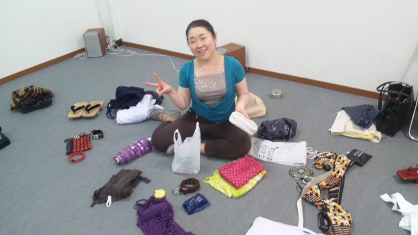 写真撮影に向けていろんな衣装とアクセサリーを並べて準備中。